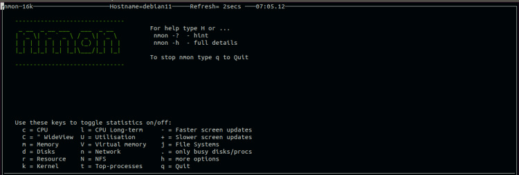 Después de ejecutar Nmon, tendrás que pulsar cualquier tecla para comprobar las estadísticas específicas de tu sistema. También puedes personalizar Nmon según tus necesidades.