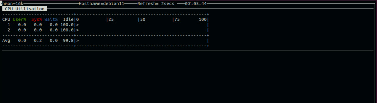 Obtendrás la interfaz cli de Nmon en la siguiente pantalla.