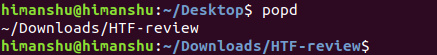 Como puedes ver, el directorio /home/himanshu/Downloads/HTF-review se convirtió en el directorio de trabajo actual del usuario.