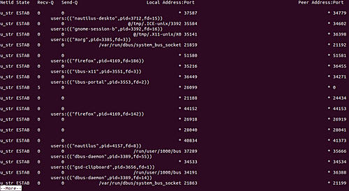 Verás que ss muestra los sockets con conexiones establecidas en su salida por defecto.